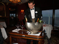 The dining room is located on Deck 12, and features large windows that look out to the ocean; the decor is French Novueau with rich red, green, and gold tones - it manages to be both luxurious and welcoming at the same time. One of the very nice extras that Remy provides (and there are many) is that once dinner is booked and guests are on board they are invited to meet with a sommelier in Remy's wine room and pre-select their wines for the evening. Jay and I very much wanted to do this just for the experience, but ran out of time - we plan to take advantage of this service on our next cruise.