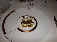 Jay's second course was Asperge Verte - Asparagus with black truffles and vin jaune sauce. Jason adored this - he's a big fan of asparagus to begin with and when someone adds black truffle sauce to it ... well, he's over the moon! There was a second component to Jay's asparagus course which is pictured below. He didn't have as much to say about that one but still enjoyed it.